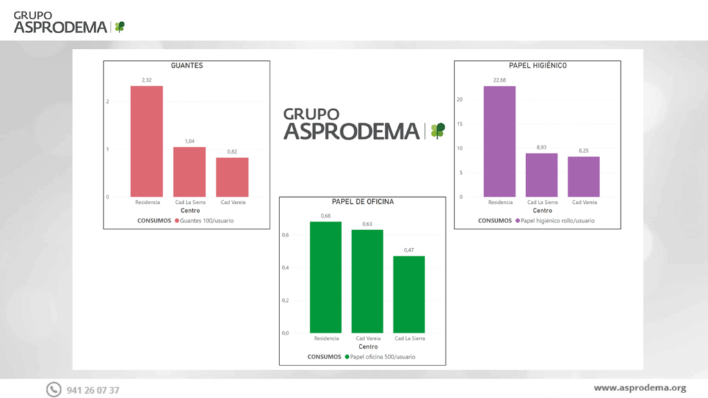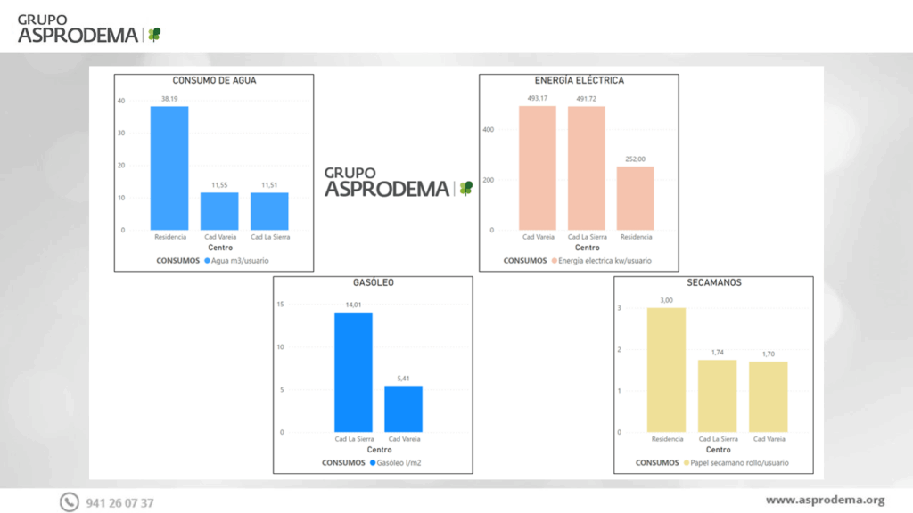 En ASPRODEMA estamos firmemente comprometidos con el cuidado del medio ambiente. Uno de nuestros objetivos prioritarios es reducir los consumos en los distintos servicios que ofrecemos. Este año hemos comenzado a registrar estos consumos para disponer de una base sólida que nos permita analizar, mejorar y comparar los resultados en los próximos años, asegurándonos de que avanzamos en la dirección correcta.